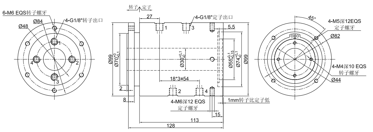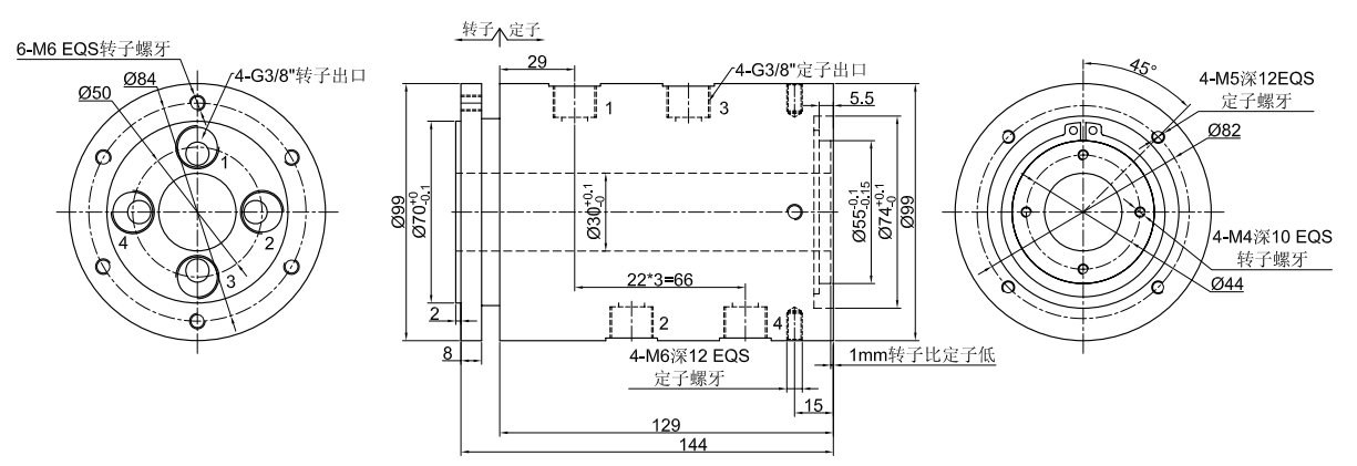 GJ4030系列 (中空30mm, 4進(jìn)4出, 中空氣液旋轉(zhuǎn)接頭,氣滑環(huán),液壓滑環(huán))