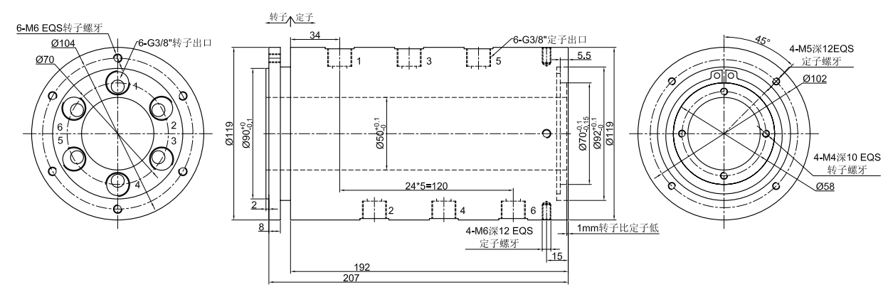 GJ6050系列 (中空50mm, 6進6出, 中空氣液旋轉(zhuǎn)接頭,氣滑環(huán),液壓滑環(huán))