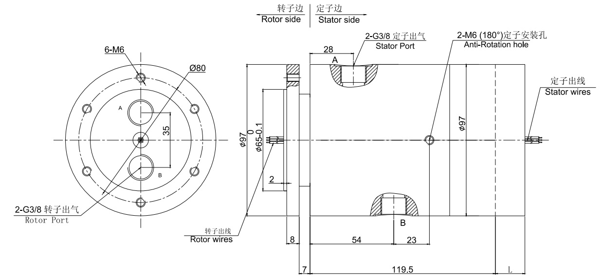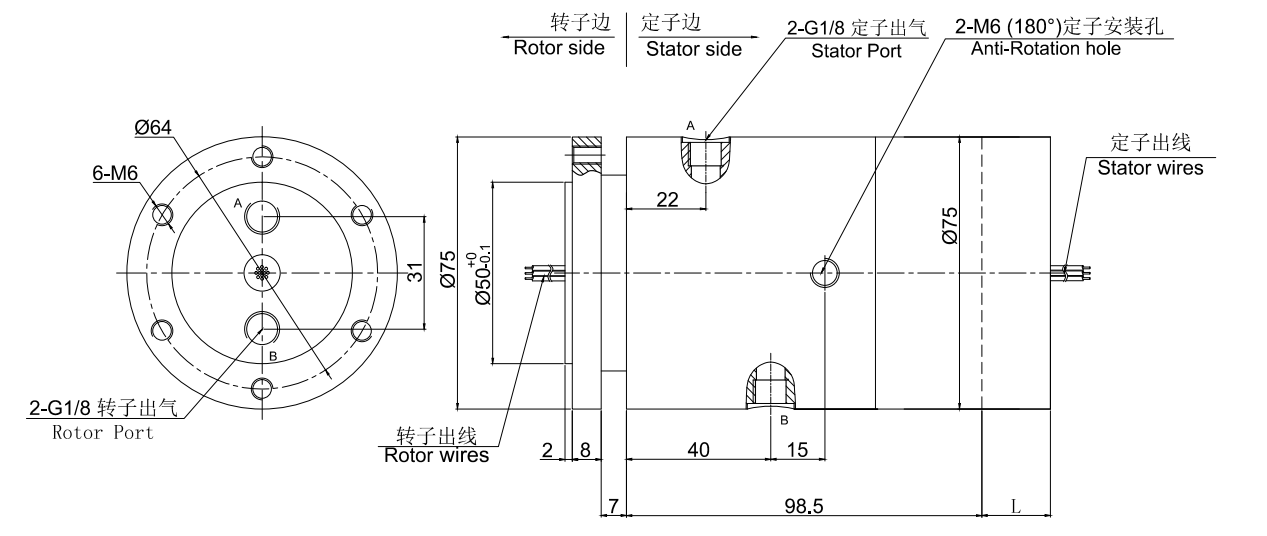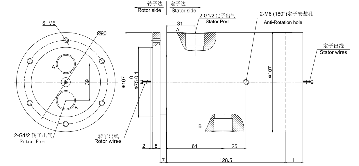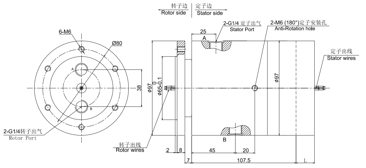 • · 標準為法蘭安裝形式,2進2出旋轉(zhuǎn)接頭,2路氣液滑環(huán)可定制空心軸安裝