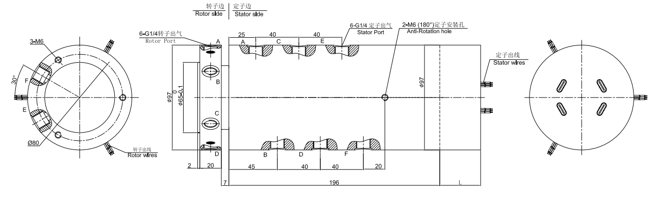 注:10A和信號(hào)(5A) 可以任意組合,最大可到96路,詳細(xì)請(qǐng)咨詢客服。6進(jìn)6出旋轉(zhuǎn)接頭,6路氣液電滑環(huán),氣液電組合滑環(huán)可在標(biāo)準(zhǔn)產(chǎn)品上進(jìn)行非標(biāo)定制,請(qǐng)咨詢客服。