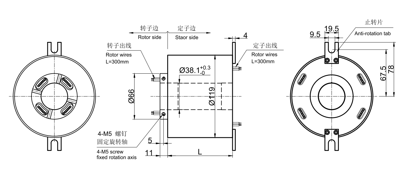 • · 通孔直徑為38.1mm(適用于<=38.1mm)的標(biāo)準(zhǔn)系列整體式精密導(dǎo)電防水滑環(huán)。