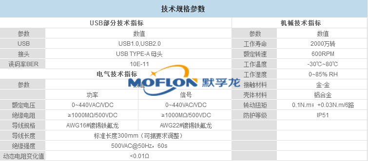 默孚龍導(dǎo)電滑環(huán)技術(shù)規(guī)格參數(shù)