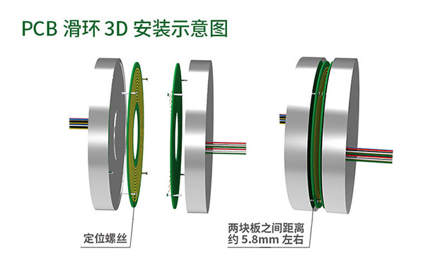 安裝要求:盤式滑環(huán)無特別需要注意的地方。PCB滑環(huán)PCB滑環(huán)是轉子和定子分離的滑環(huán),獨立安裝,因此在安裝的時候特別要注意安裝的相對位置,保證觸點和環(huán)道有足夠壓力和同心度。同心度通過pcb板4周的定位螺絲來保證,壓力通過pcb之間的間距來保證,觸點的壓力由2塊pcb板的間距來確定。